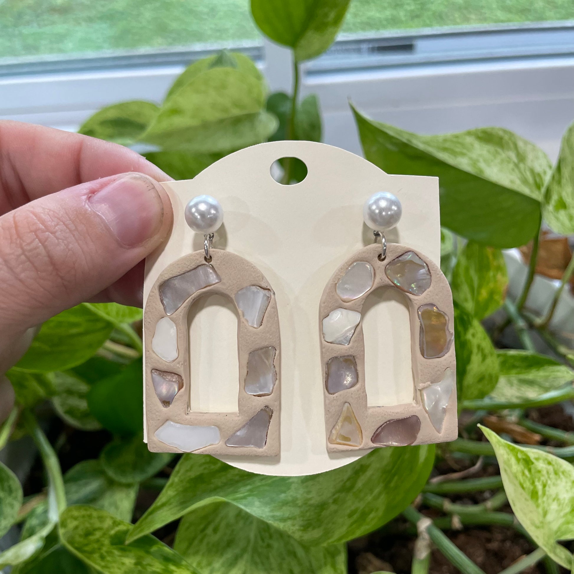 Playful, coastal, and full of charm — the She Sold Seashells earrings feature real seashells pressed into hand-shaped clay. Each pair is a unique tribute to sun-soaked shores and seaside nostalgia.