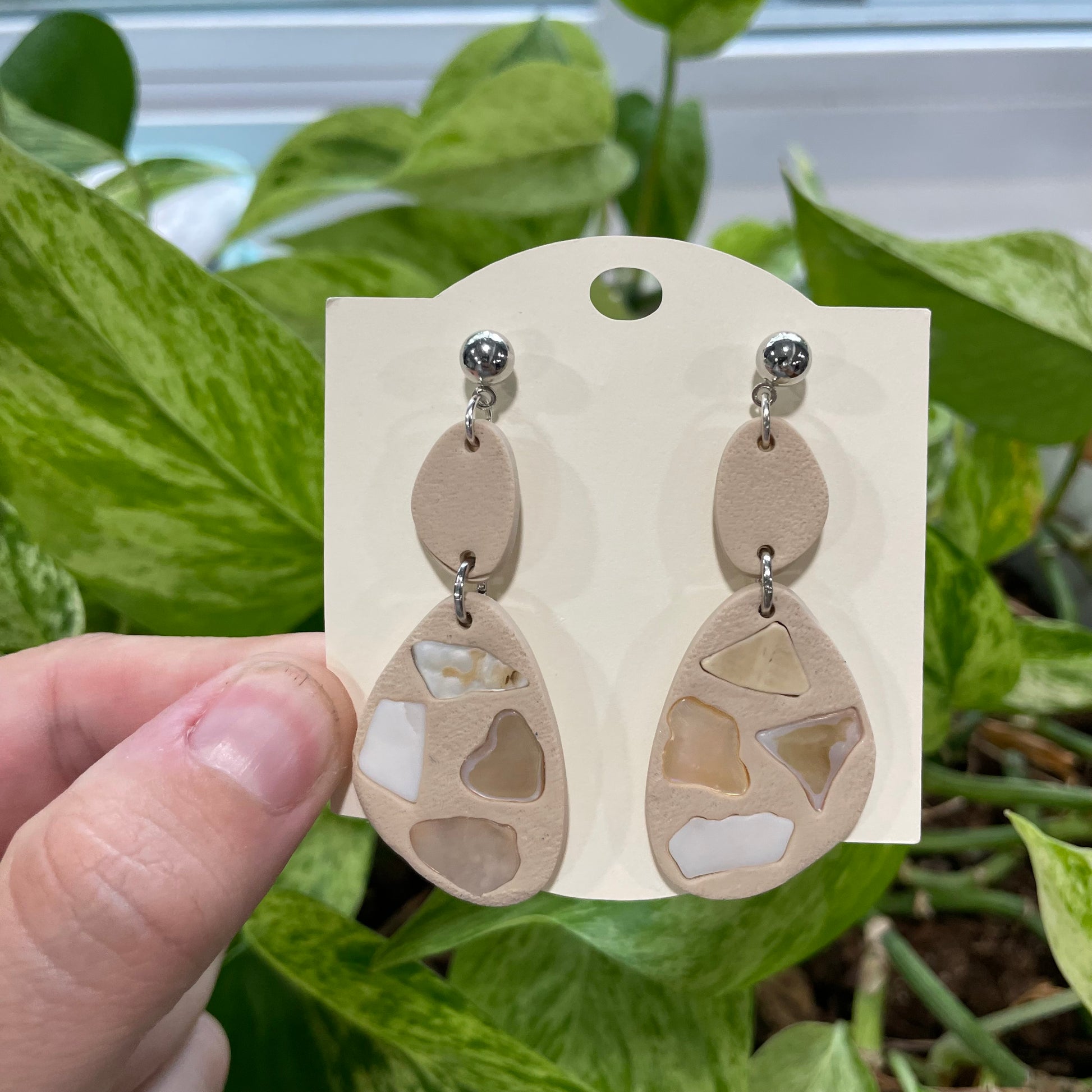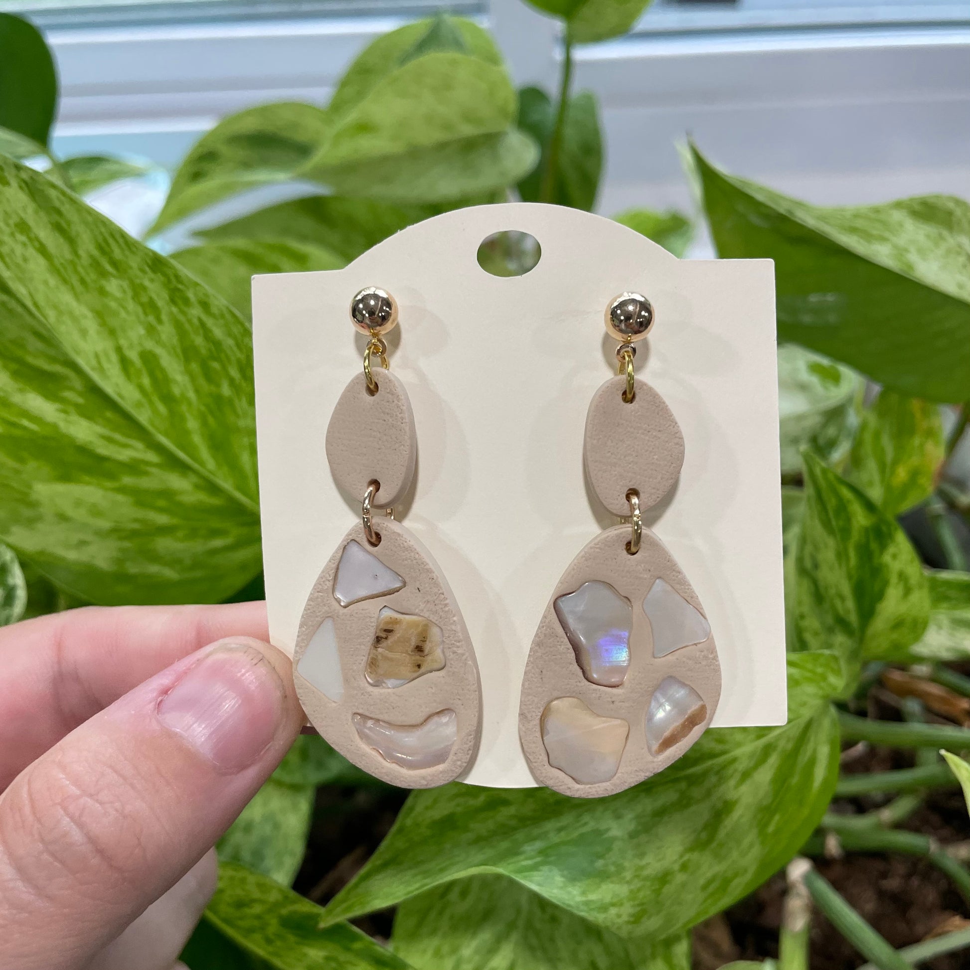 Playful, coastal, and full of charm — the She Sold Seashells earrings feature real seashells pressed into hand-shaped clay. Each pair is a unique tribute to sun-soaked shores and seaside nostalgia.
