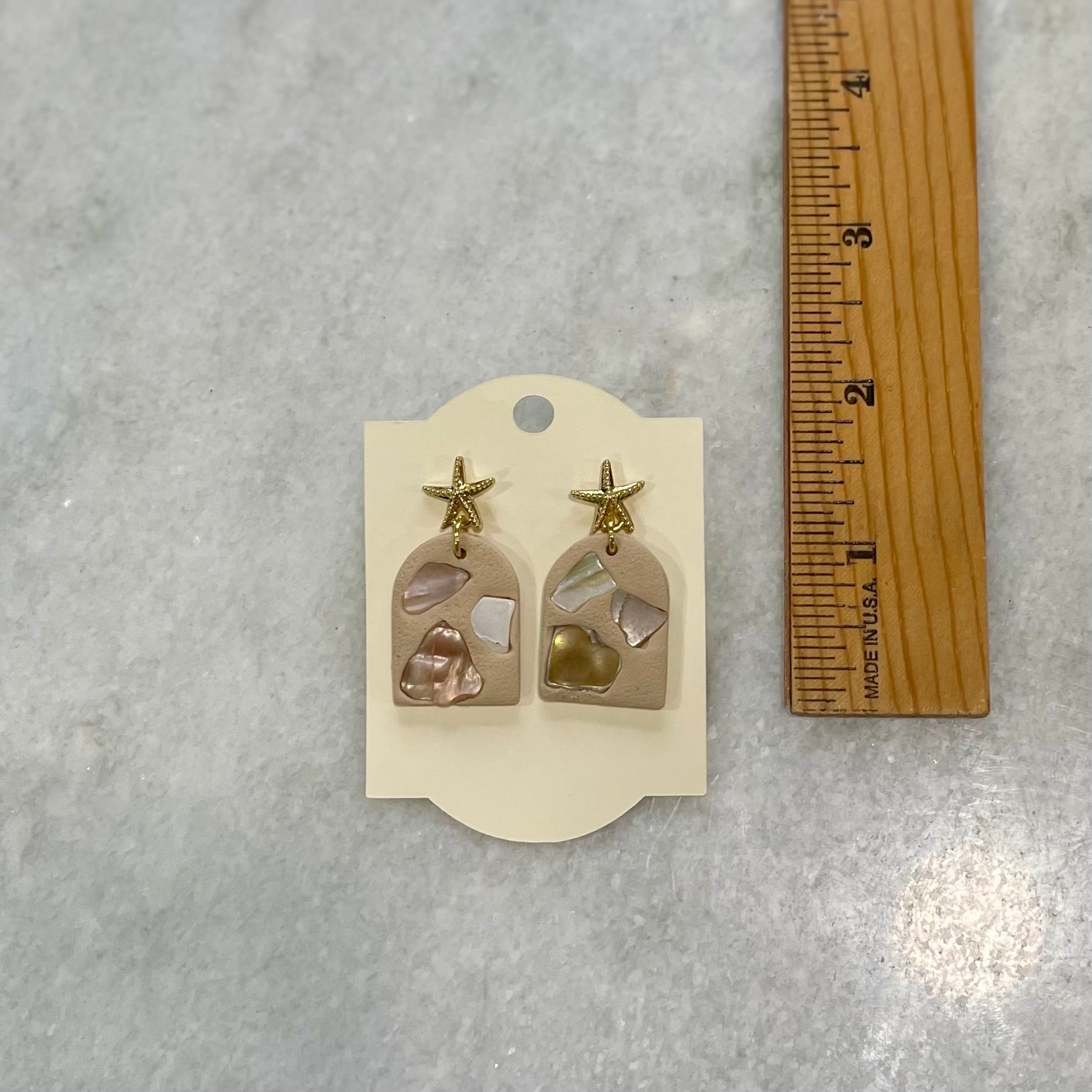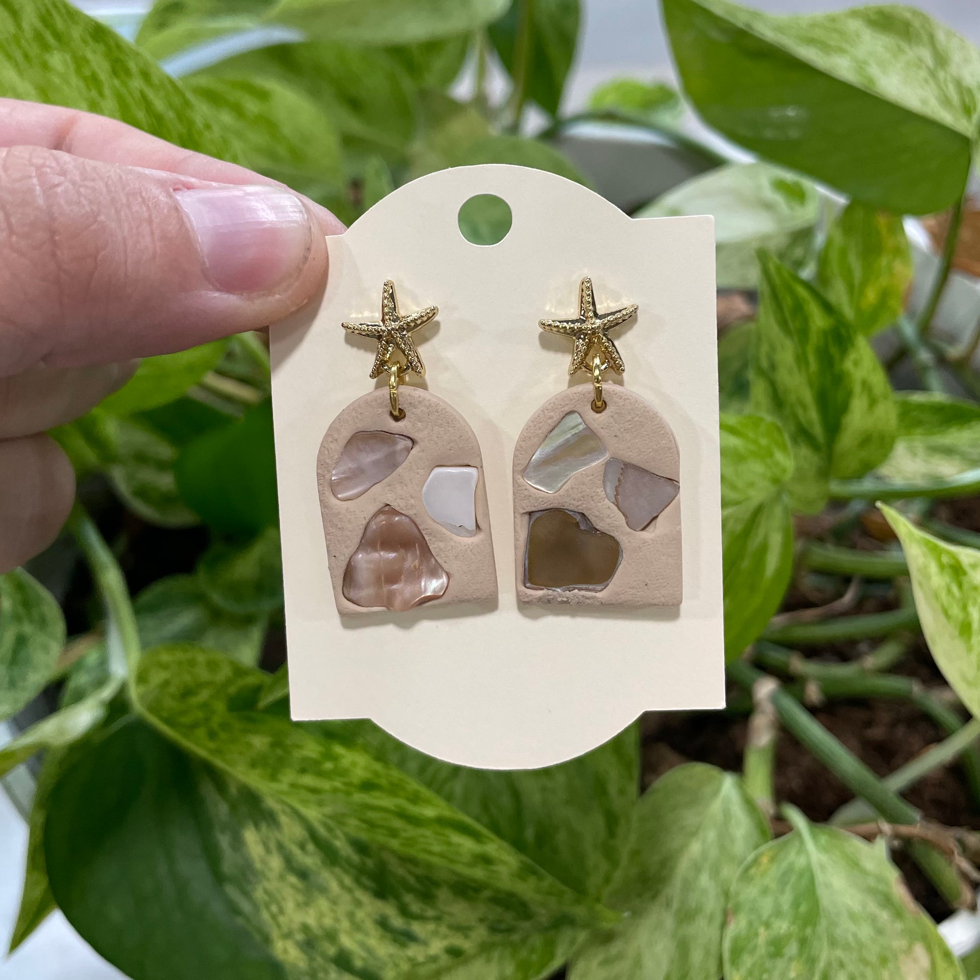 Playful, coastal, and full of charm — the She Sold Seashells earrings feature real seashells pressed into hand-shaped clay. Each pair is a unique tribute to sun-soaked shores and seaside nostalgia.