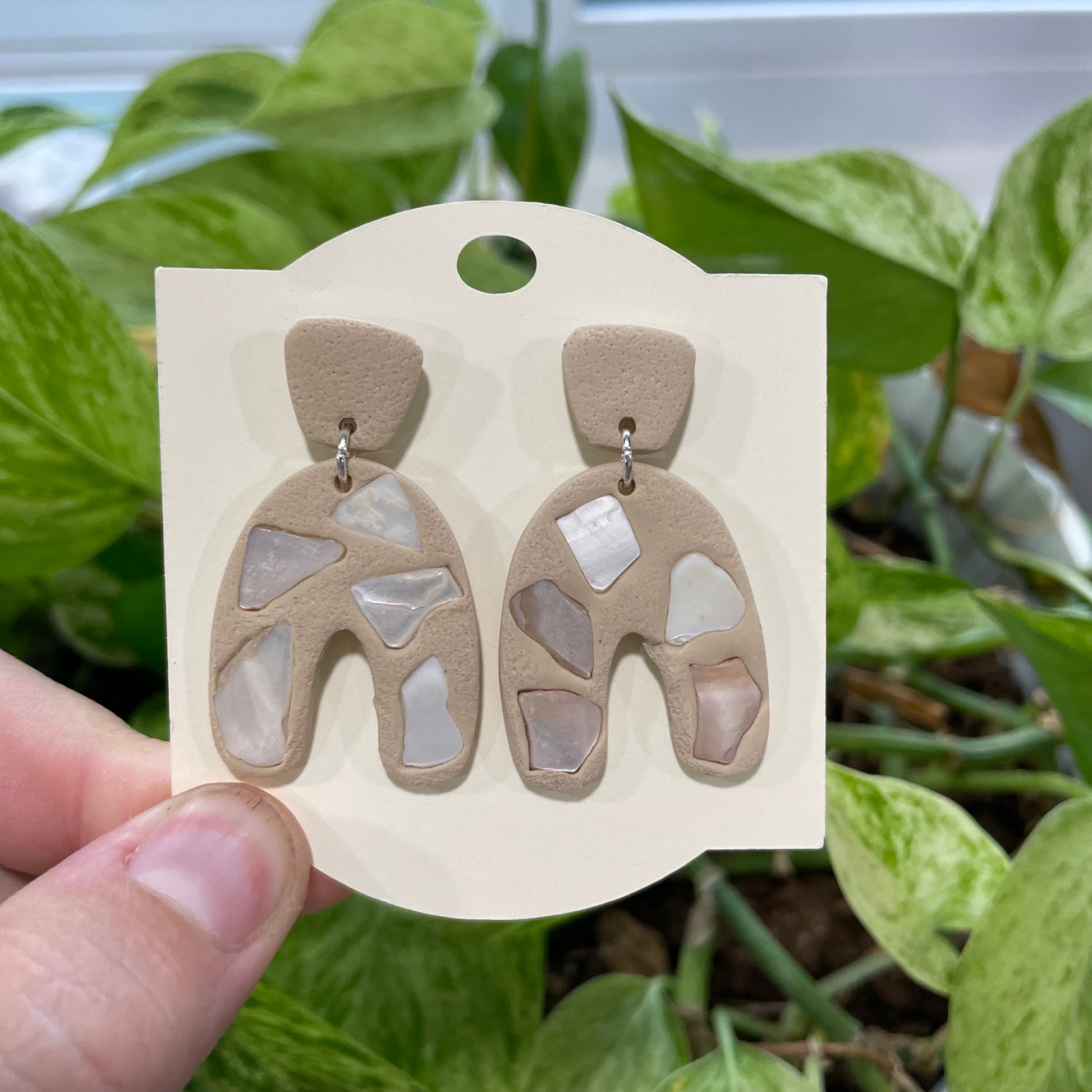 Playful, coastal, and full of charm — the She Sold Seashells earrings feature real seashells pressed into hand-shaped clay. Each pair is a unique tribute to sun-soaked shores and seaside nostalgia.