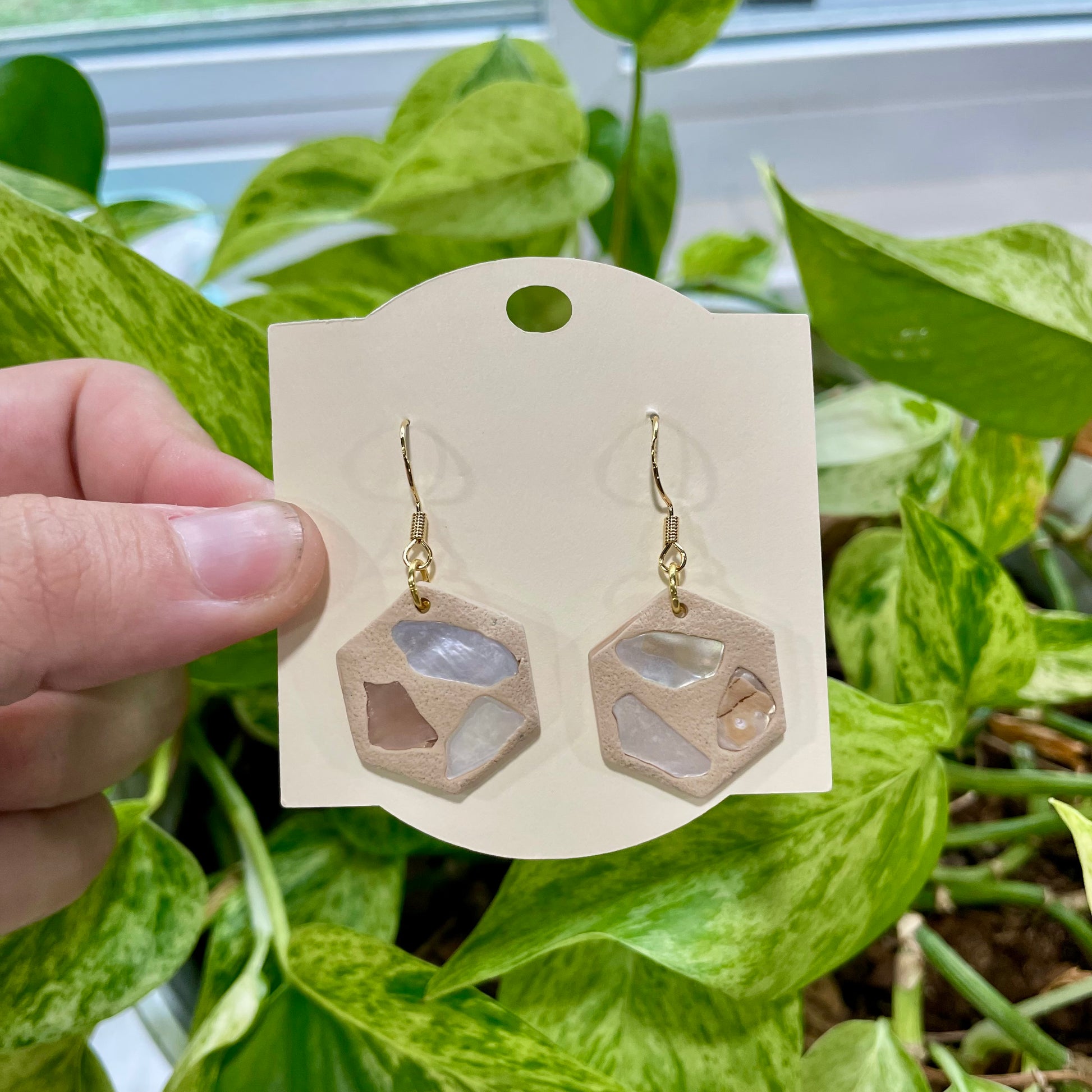 Playful, coastal, and full of charm — the She Sold Seashells earrings feature real seashells pressed into hand-shaped clay. Each pair is a unique tribute to sun-soaked shores and seaside nostalgia.