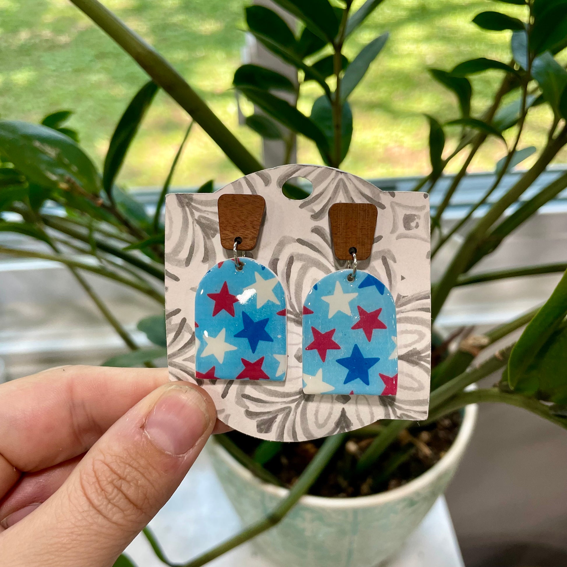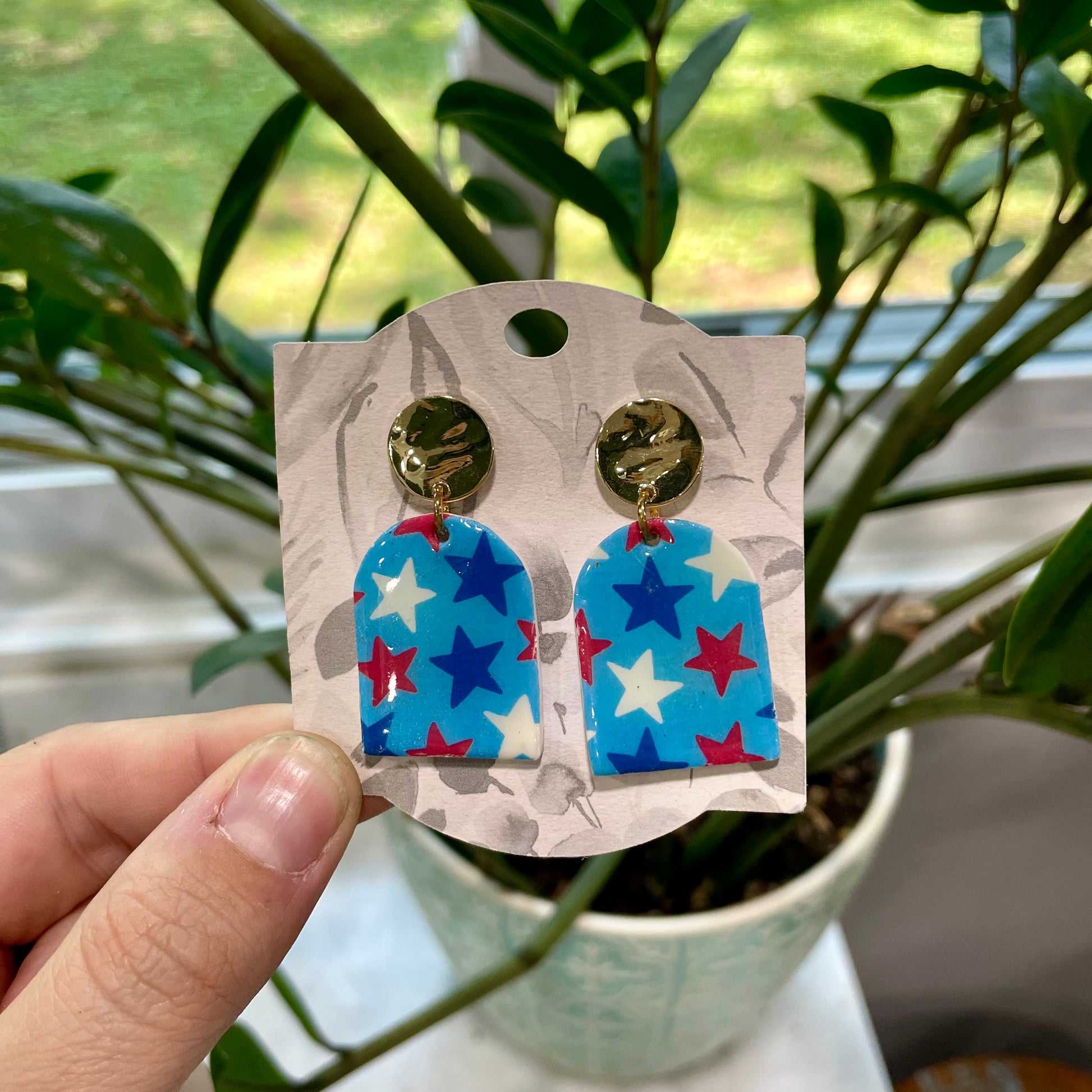 Celebrate Independence Day in style with our exclusive collection of 4th of July clay earrings! Handcrafted with patriotic flair, these unique accessories feature vibrant reds, whites, and blues in festive designs perfect for showing your American pride. Lightweight and comfortable, they are the ideal addition to any 4th of July outfit.