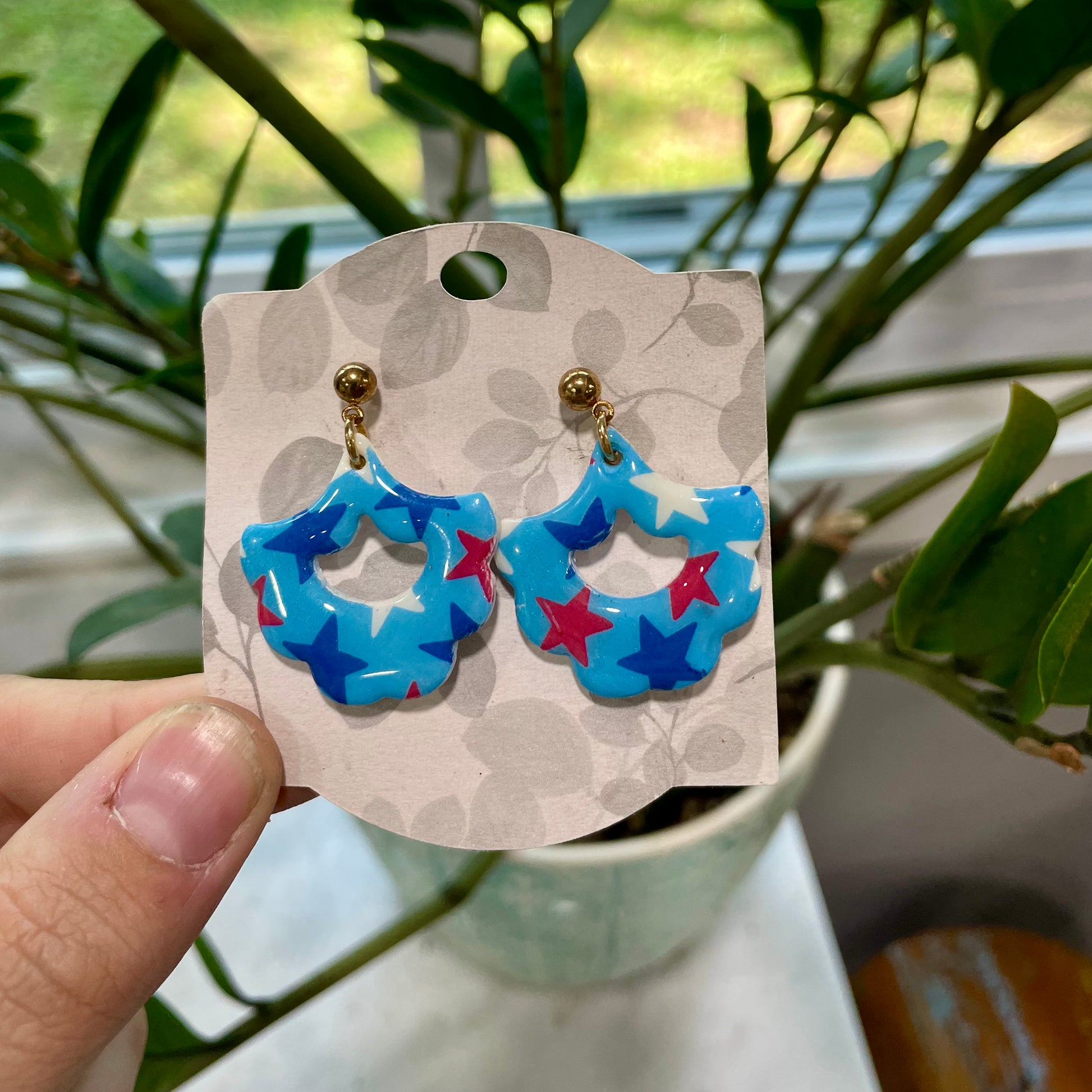 Celebrate Independence Day in style with our exclusive collection of 4th of July clay earrings! Handcrafted with patriotic flair, these unique accessories feature vibrant reds, whites, and blues in festive designs perfect for showing your American pride. Lightweight and comfortable, they are the ideal addition to any 4th of July outfit.